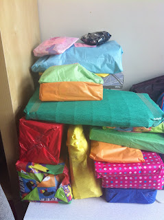 Kooky Little Sister came round the night before and wrapped the prizes for the games and gifts for the pass-the-parcel.