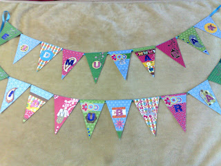 I managed to sneak in some time today between grocery shopping, freezing kebabs and marinating chicken legs to make some Eid banners/bunting. The hardest bit is always getting the triangles for the banners right. It took me a few attempts and lots of wrong pencil lines to figure it out.