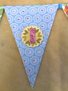 Little Lady helped to choose colours and decorations for the lettering. The lettering is usually a bit of work, but I found some good-sized glittery letters at Poundland this year. The card used for the triangles is from DCWV’s Blossoms & Butterflies Paperstack. T e embellishments were whaterver the two of us could lay our hands on: gem body tattoos, craft gems, chipboard pieces and die-cut shapes (apologies to non-crafters, this must sound like another language).