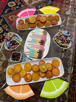 I made simple cupcakes for breakfast and set them out with some other treats: