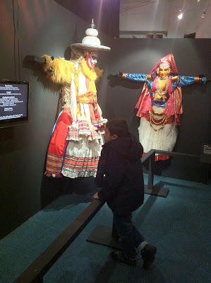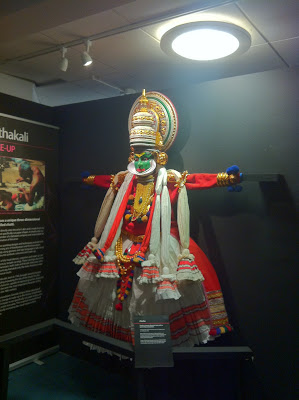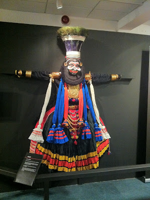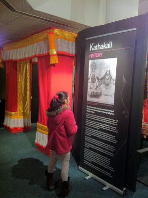 There is little happening at the moment that doesn’t involve Santa’s grotto or making Christmas cards or decorations, so I took them to see an exhibition of South Indian performance costumes (Kathakali).