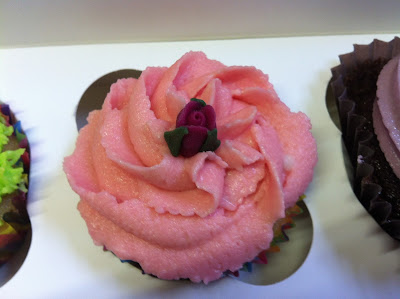 Fashionista had stopped by the night before and left a single red velvety rose this box of cupcakes that she had made.