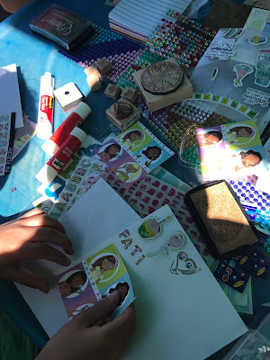 At the recent community planting day, I ran a card-making stall for the kids. They had a great time and went mad with my stickers and stamps.