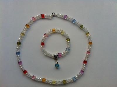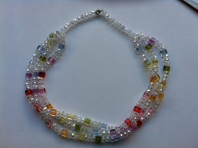 I originally thought the square beads were  bit childish, but when I mad the necklace sets, I found I loved the colours and shape of them, so I decided to make a three stranded version for myself.
