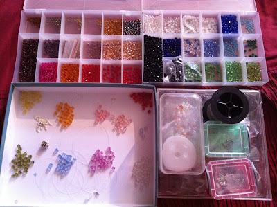 I let the boys take the belt apart and found that the beads were actually a lot brighter than they looked when they were threaded on the pink string, there were also more colours (beads tray below with blue border).