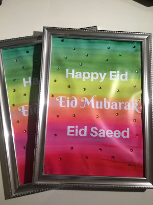 In addition I have been trying to get the last of my Eid preparation done: gifts for my family, grocery shopping, food preparation, de-cluttering and cleaning the house. My favourite bit has been the brightly coloured bunting and posters for my frames that I created this year: