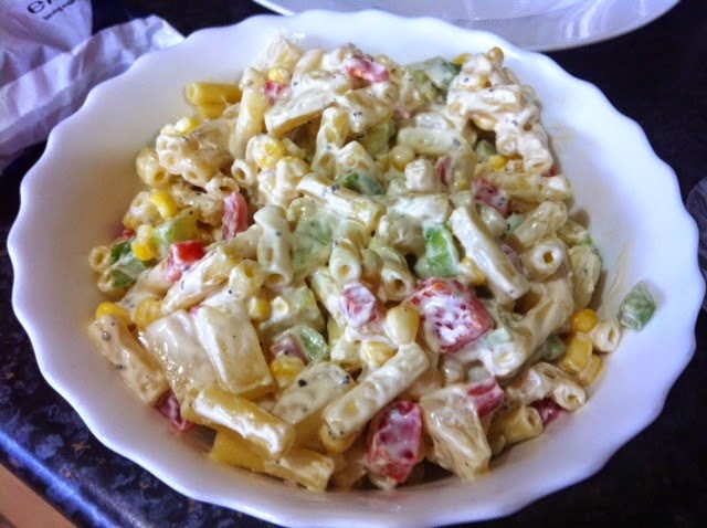 Method: Mix the Greek yoghurt, mayonnaise, sugar, pepper and salt. Then add the diced peppers, cucumber, sweetcorn and pineapple chunks, if the pineapple pieces are quite large, I sometimes halve them. Give everything a good mix. Boil the pasta as per packet instructions aiming for an al-dente (slightly firm) texture. I usually add a dash of oil to stop the pasta sticking together as it boils. Add the pasta to the Greek yoghurt mix. Check the salt and pepper is to your liking (I use coarse black pepper and often add a little more, butt find you have to be careful with the salt as it can easily be too much). This makes a nice little addition at parties or picnics and is fairly filling because of the pasta. It is also quite nice as a light lunch in summer. Once you have made this once you can easily adjust as per your taste (e.g use more or less of any of the fresh vegetables or try adding new ones as per your preference).