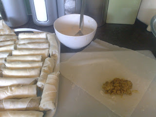 At the moment my mother-in-law and two brothers-in-law will be here for most of Ramadan, so I am trying to cook in bulk and freeze. This Sunday was spent making chicken spring rolls (I used this recipe for the filling) I did attempt one samosa, but it was very clear that nice neat little triangles weren’t going to happen (despite watching this excellent tutorial). I intend to wait until my mum makes hers (which are perfect of course) and then sit and copy her.